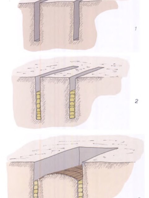 - Creuser en sous-œuvre dans la cave pour évacuer la terre. Si vous n'avez pas prévu la hauteur d'un homme, il peut être intéressant de creuser une tranchée au centre de la cave à -2m de la voute pour faciliter le travail.
